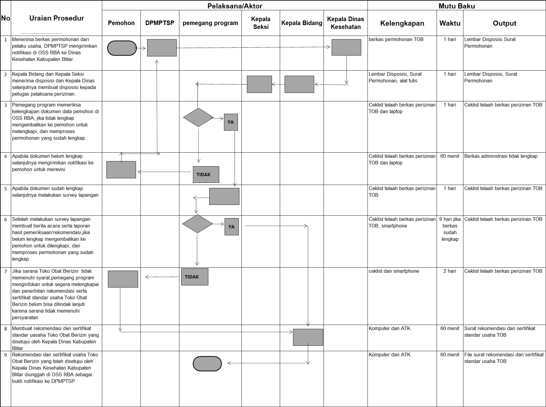 Pemohon Mendaftar Akun OSS Kementrian Investasi/BKPM, Pemohon Mengisi Data, Pemohon Mengunggah Dokumen Persyaratan, Dinkes Melakukan Verifikasi, Pemohon Melakukan Revisi Jika Dibutuhkan, Dinkes Mengeluarkan BA Visitasi, Pemohon Melakukan Perbaikan Jika Dibutuhkan, Dinkes Mengeluarkan Sertifikat Standar, Dinkes Mengunggah Sertifikat Standar ke OSS, Pemohon Menyerahkan Salinan Sertifikat Standar ke DPMPTSP, Terakhir DPMPTSP Mengeluarkan Surat Izin Toko Obat.